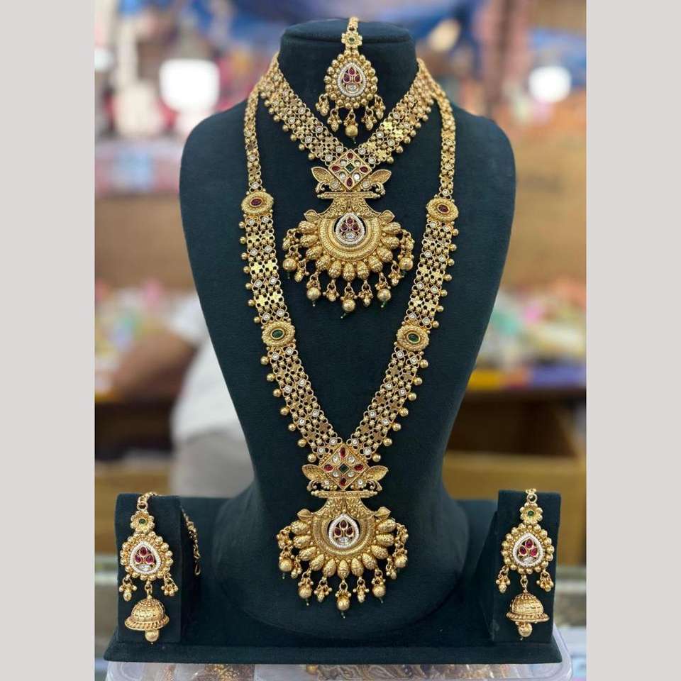 Gold Plated Kundan Stone and Beads Double Necklace Set 10581340PGR Fine Jewelry for Women
