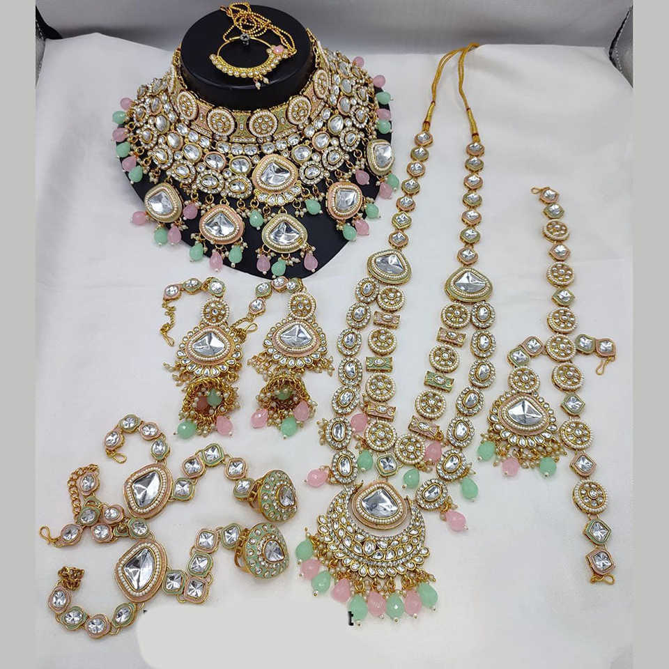 Gold Plated Kundan Stone and Beads Meenakari Bridal Set 10581303PGR Fine Jewelry Set
