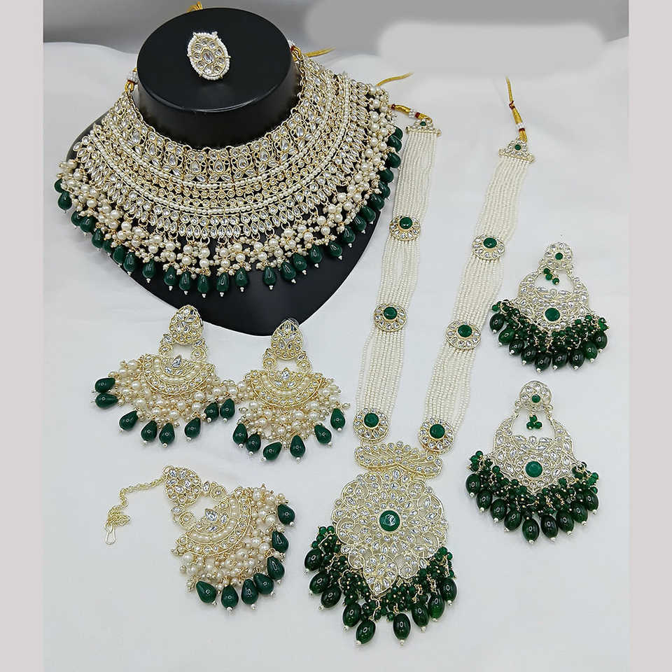 Gold Plated Kundan Stone and Beads Double Necklace Set Fashion Jewelry 10573873