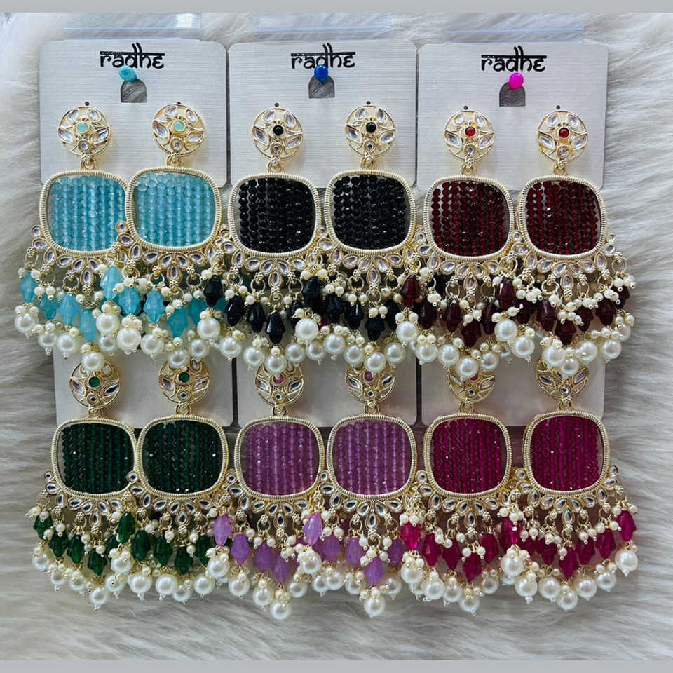 Gold Plated Kundan Stone and Beads Dangle Earrings Fine 11103283DP Jewelry