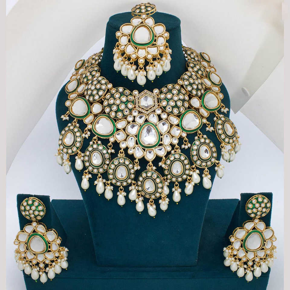 Gold Plated Kundan and Beads Fine Jewelry Necklace Set 10581332WH