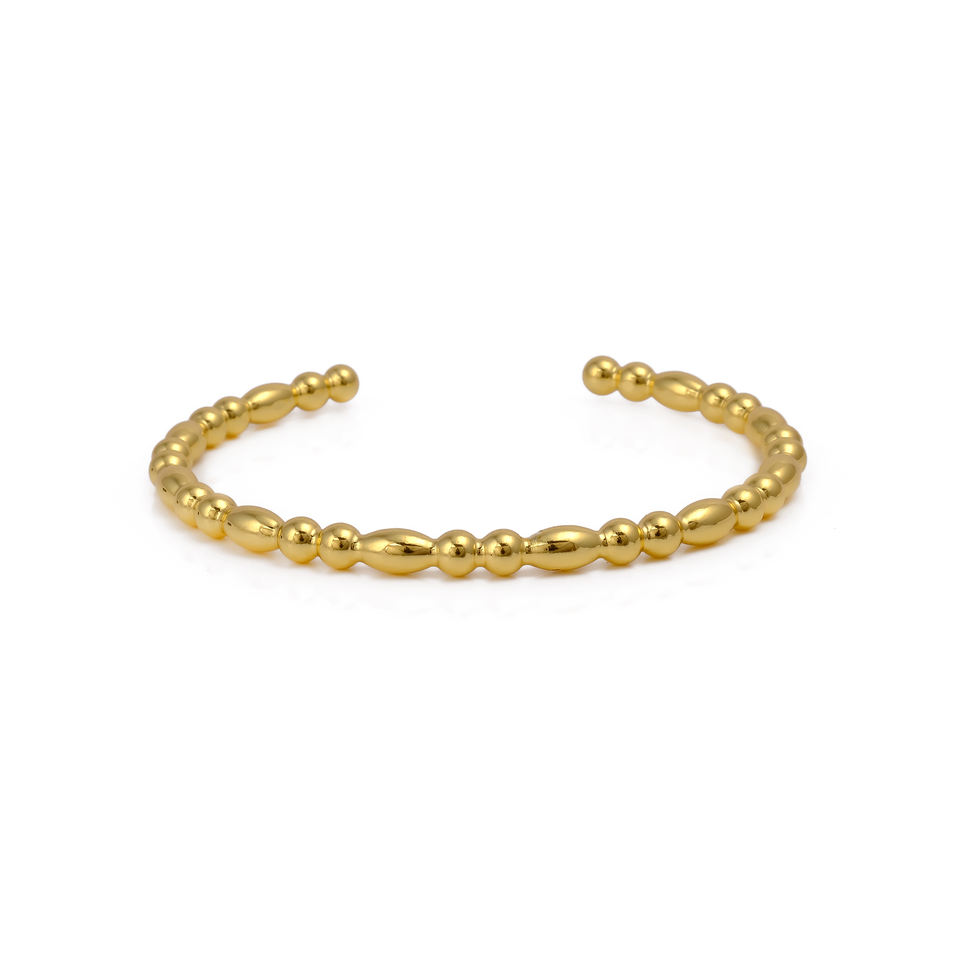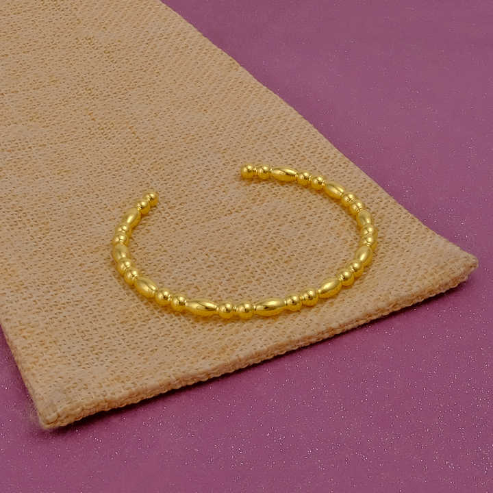 Gold-Plated Lightweight Beaded Open Cuff Bracelet Adjustable Oval Fashion Jewelry for Women Smooth Textured Bangle