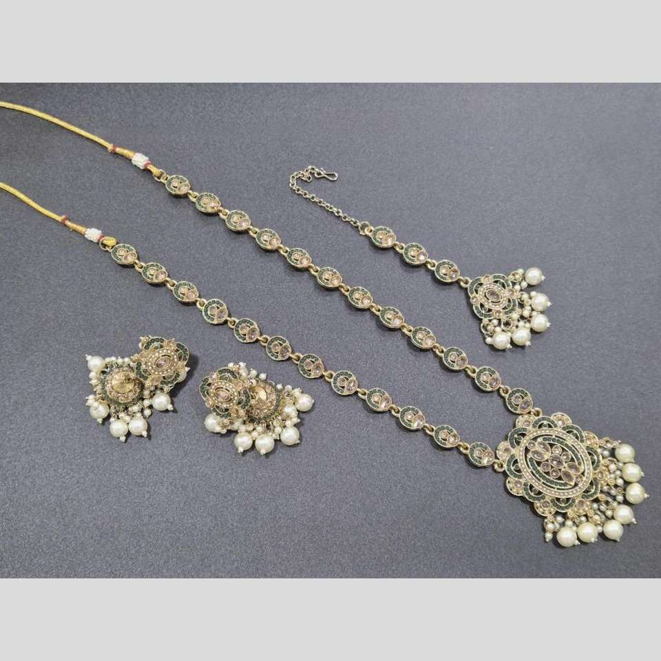 Gold Plated Long Necklace Set with Crystal Stone and Pearls 11714301GR Fine Jewelry Set