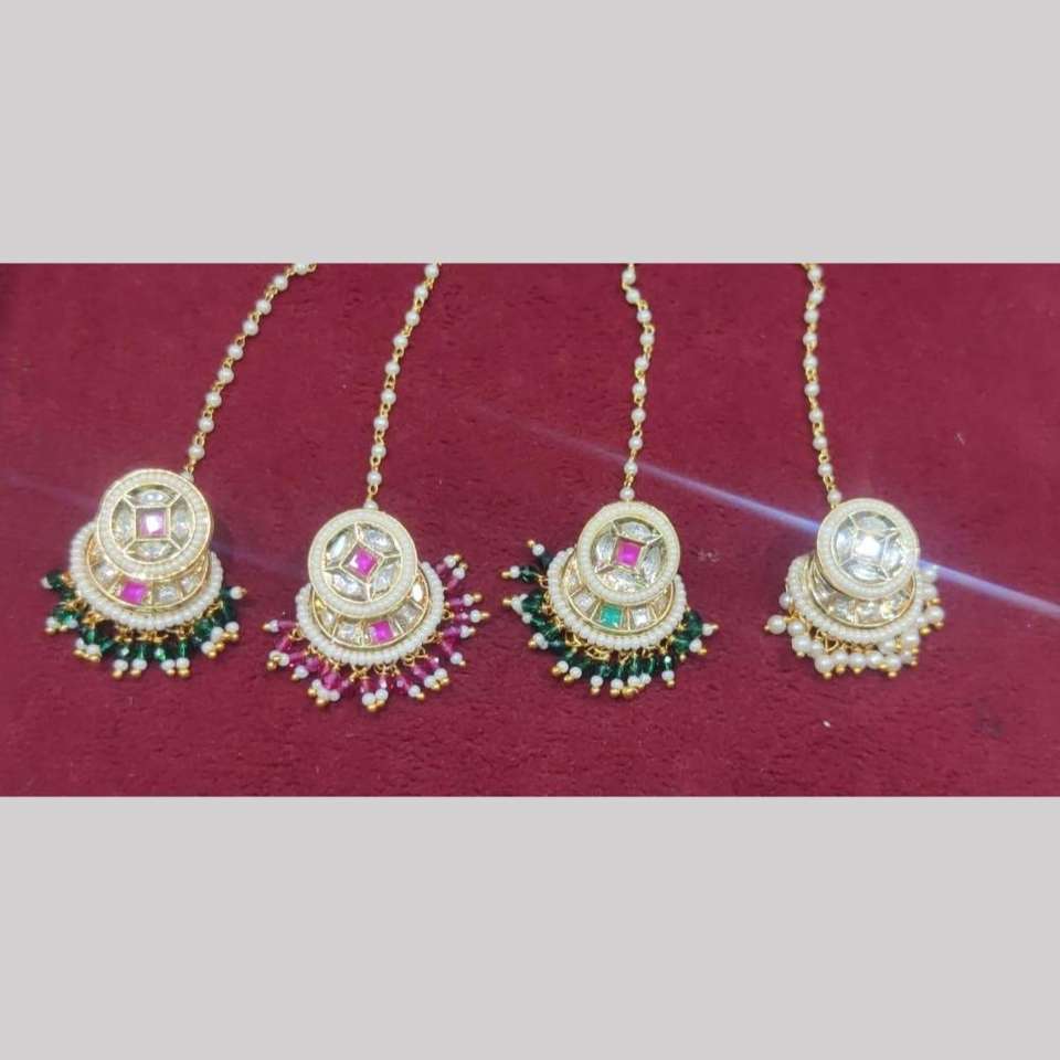 Gold Plated Maangtikka with Crystal Stone and Pearls Bridal Headwear-11151629WH