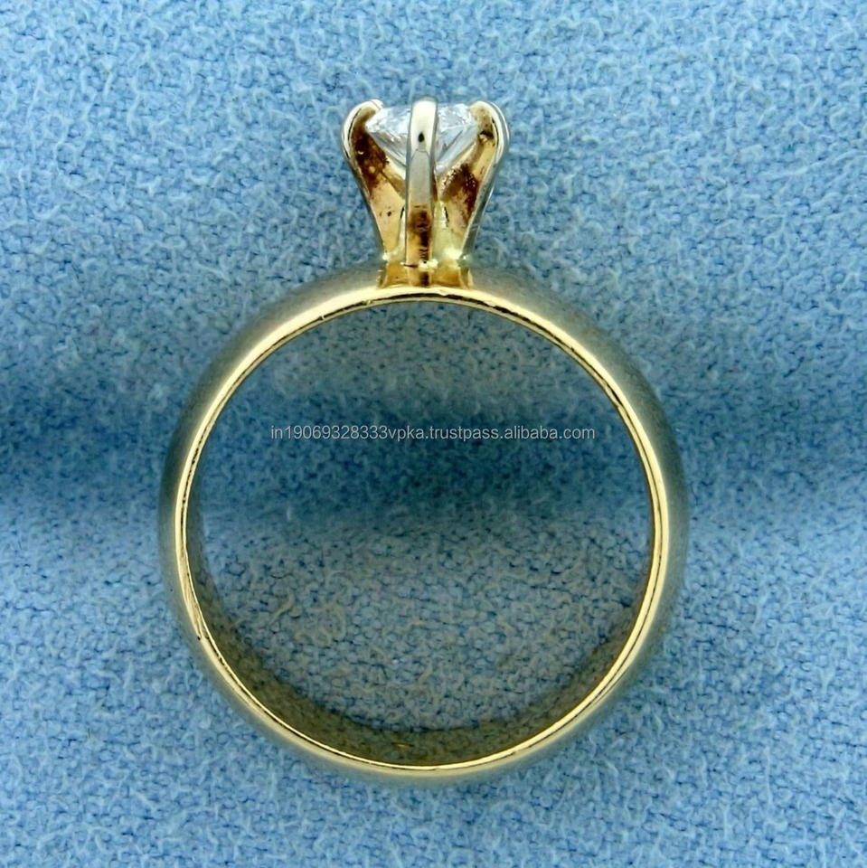 Gold-Plated Marquise Simulated Solitaire Engagement Ring with Six Prongs Wedding Band with Wide Band Accents Moissanite Rings