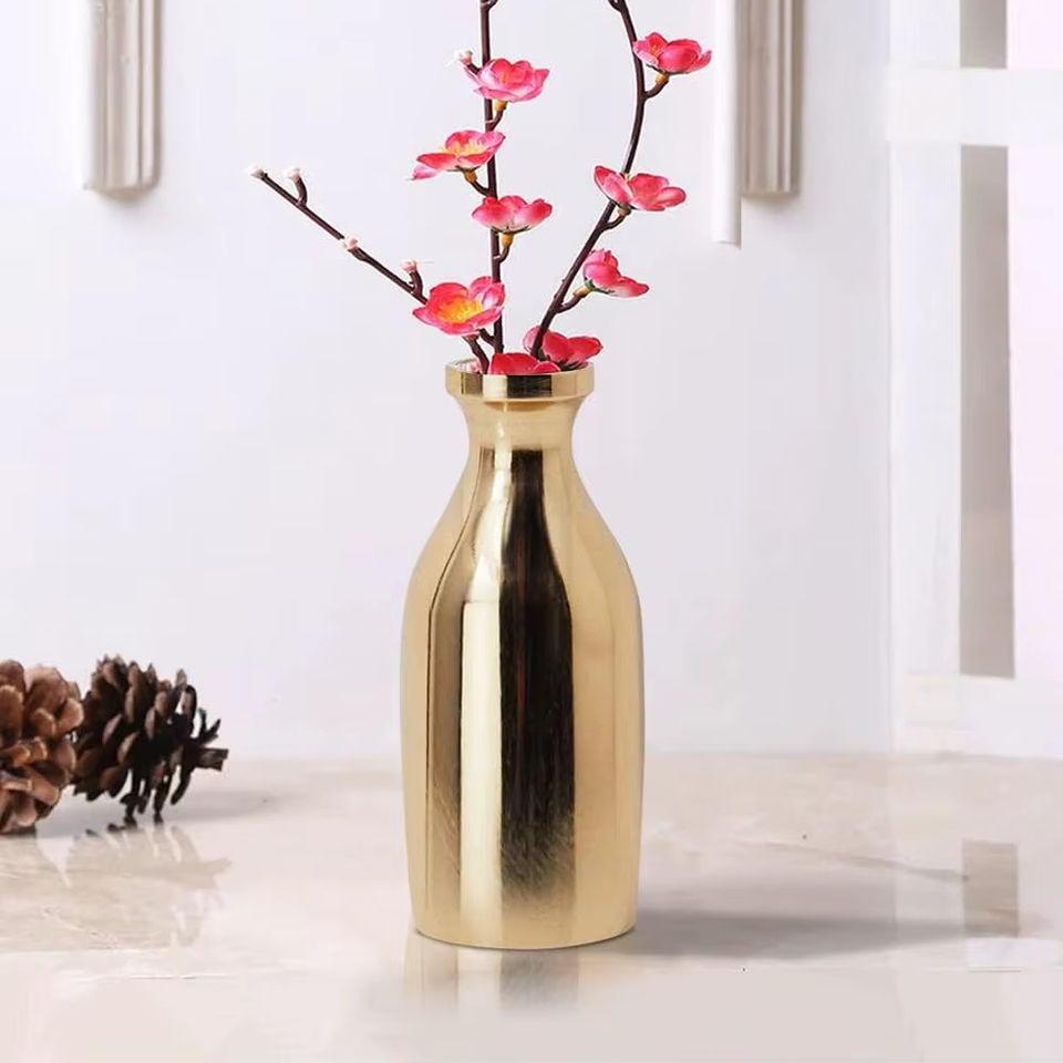 Gold Plated Metal Art Deco Eco-Friendly USA Vase Timeless Elegant Decor Customizable Flower Home Office Personalized Tabletop