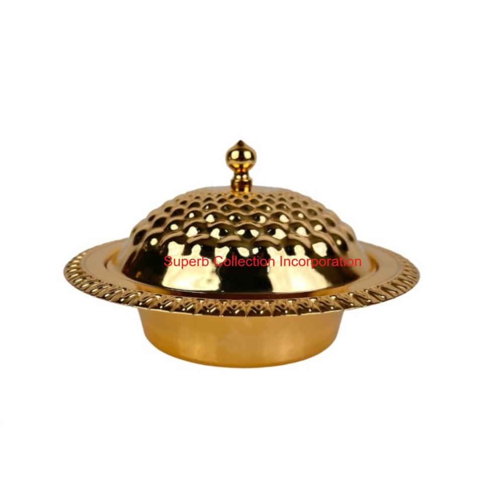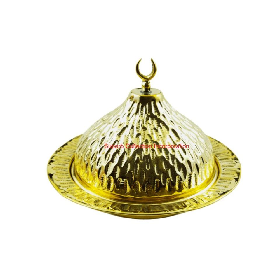 Gold Plated Metal Date Bowl With Crescent Moon Dome Lid Traditional Style Decorative Serving Dish For Ramadan And Eid Gifts