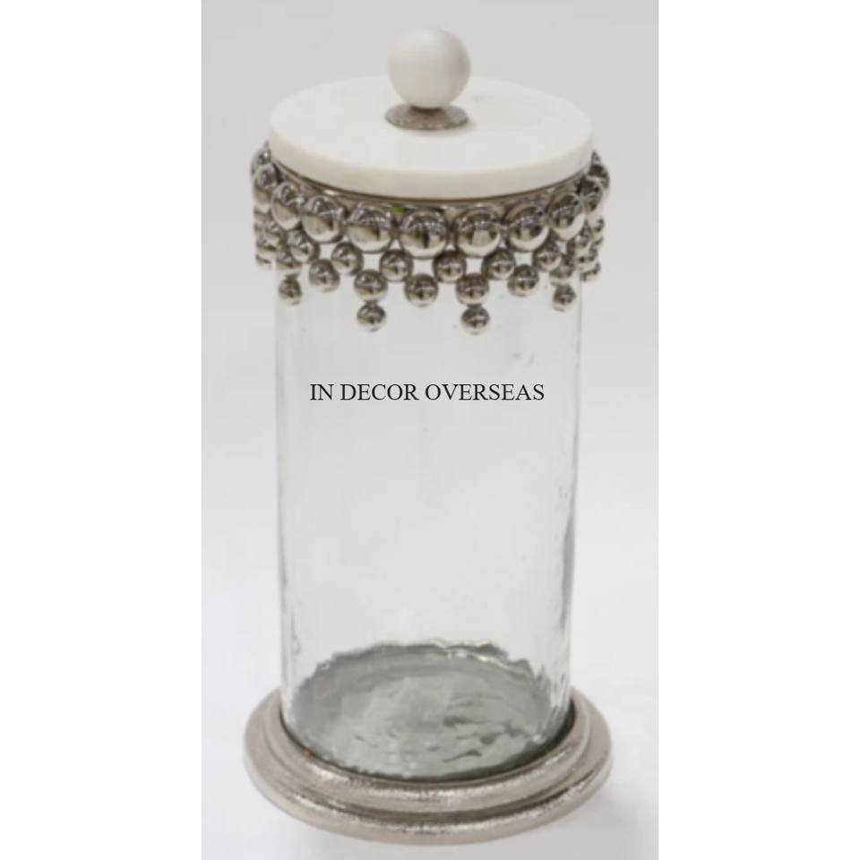 Gold Plated Metal Leaves Design Base & Top Lid With Clear Glass Hammered Texture Food Storage Canisters Kitchenware Supplies