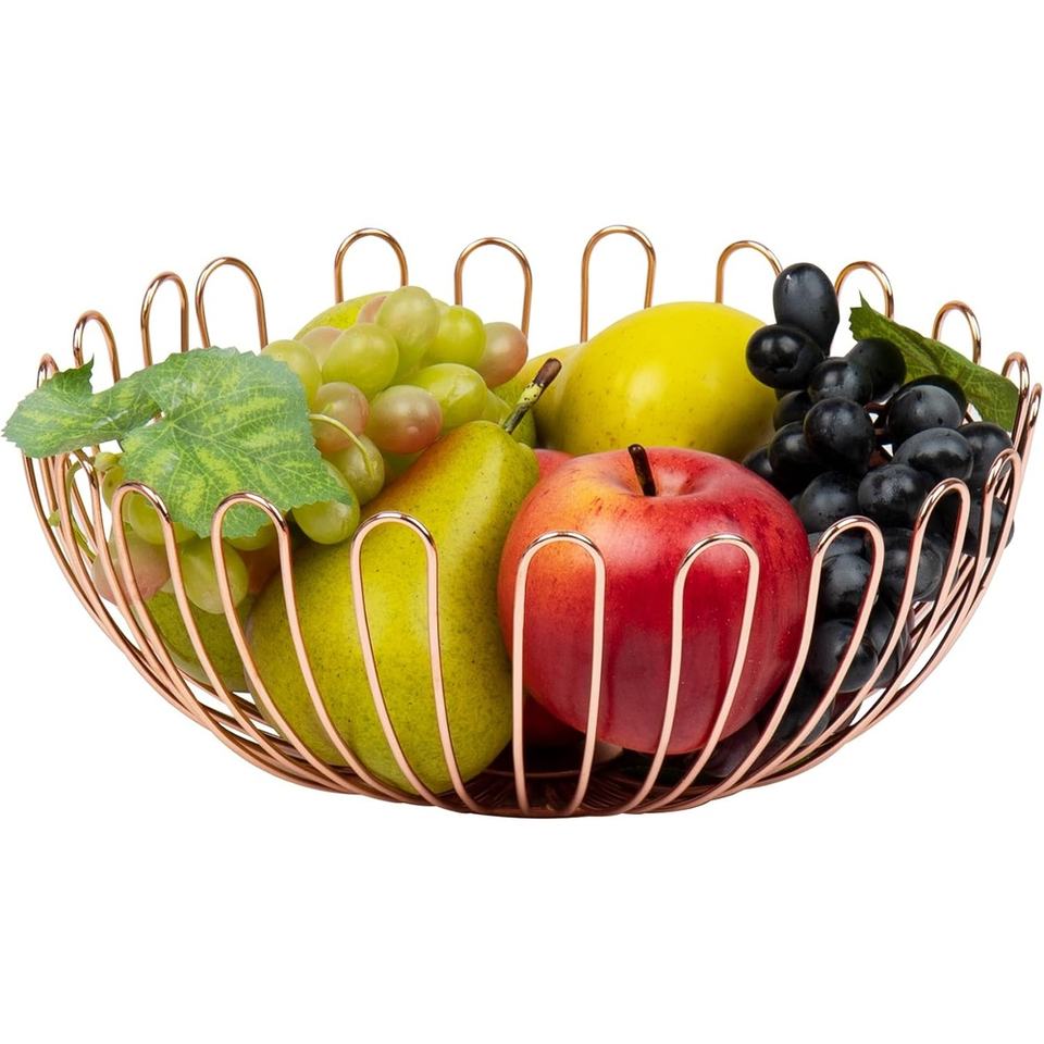 Gold Plated Metal Wire Fruit Basket Sleek Modern Design for Stylish Countertop Fruit Storage and Display