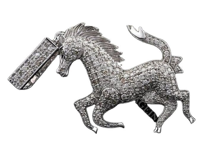 Gold Plated Moissanite White Round Shape Pendant for Men Hip Hop Style Sterling Silver with Horse Design