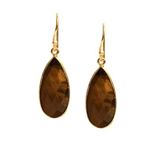 Gold-Plated November Birthstone Jewelry Tiger Eye Bezel-Set Pear Dangle Earrings 15x10mm Stylish Dangle Style