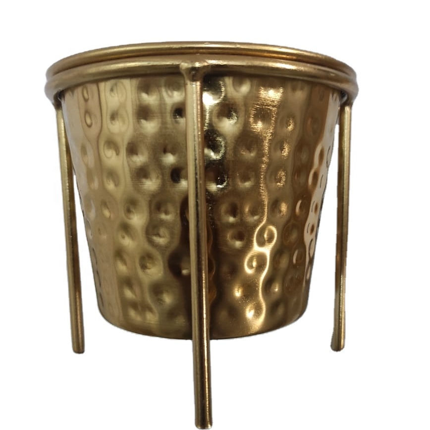 Gold Plated Planter with Stand for Outdoor Garden Decoration Metal Hammered Planter Pot in Wholesale Price