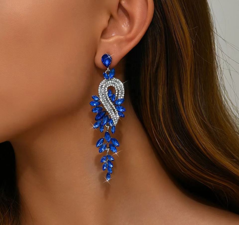 Gold Plated Retro Multi-Color Diamond Cross-Border Phoenix Pattern Leaf Note Drop-Shaped Design Alloy Dangle Earrings for