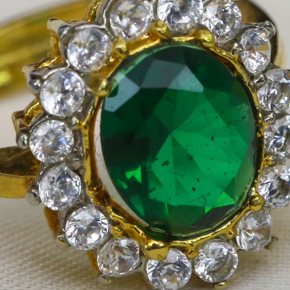 Gold Plated Ring in Green, Blue and Cz Stones Simple Women Rings Wedding Rose Gold Coating for Bride Round Zirconia Rings