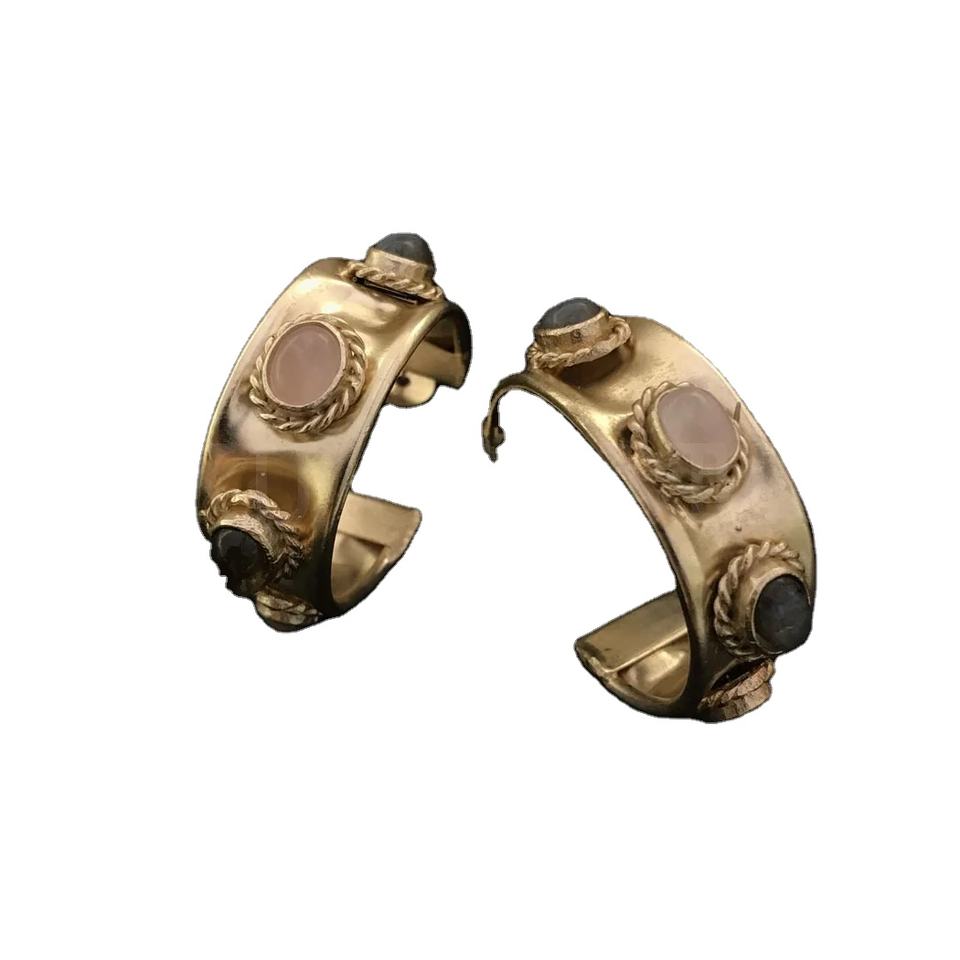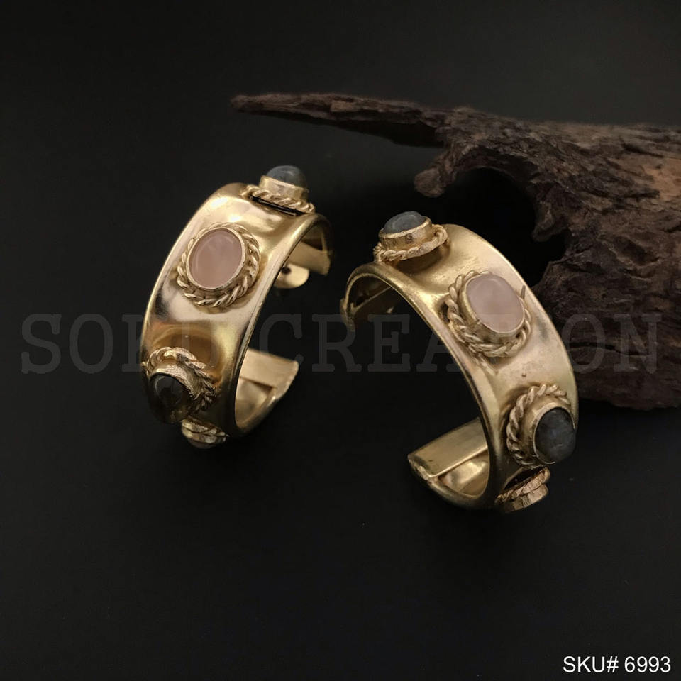 Gold Plated Rose Quartz and Labradorite Stone Design Hoops Style Push Back Earring SKU6993