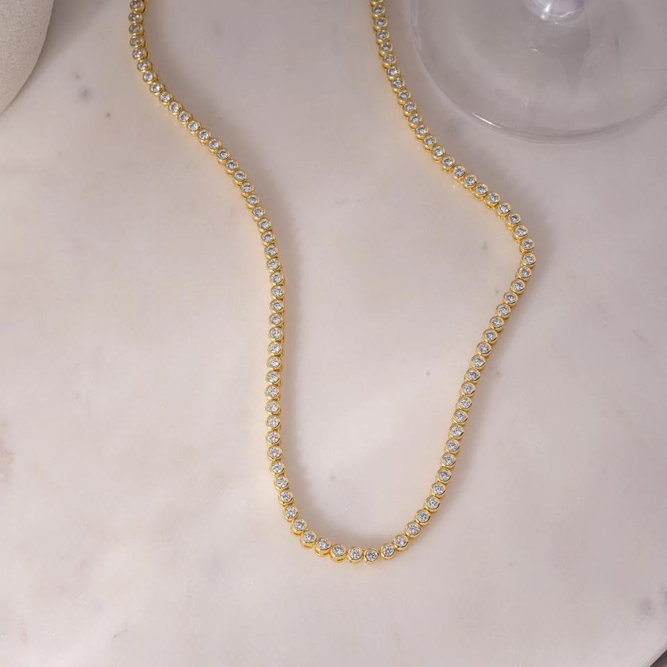 Gold Plated Round Bezel Tennis Moissanite Diamond Necklace Bridal Jewelry Gift for Her Layering Necklace