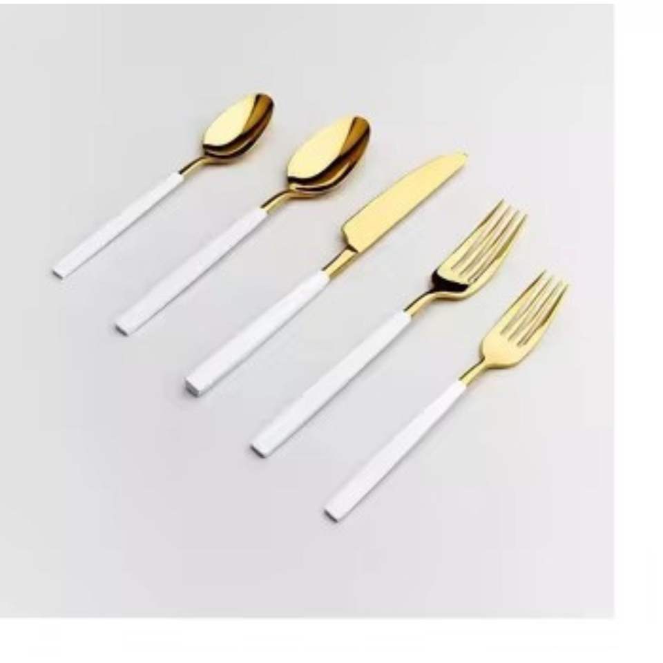 Gold Plated Salad Server With White Resin Handle for Serving Salad New Metal Cutlery Set for Hotel and Kitchenware Usage Item