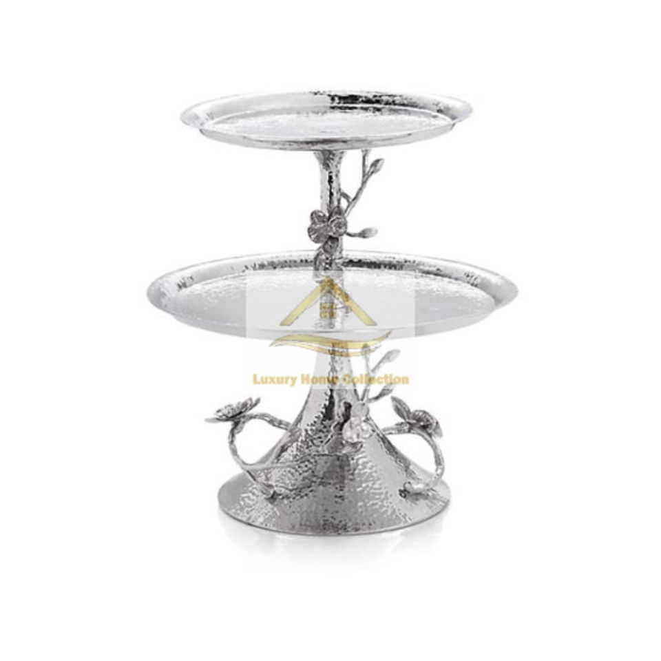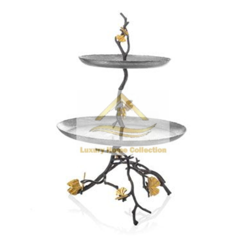 Gold Plated Shiny Flower & Leaves Designer Luxury 2 Tier Cake Stand Kitchen Ware Display Rack High Quality Cake Stand