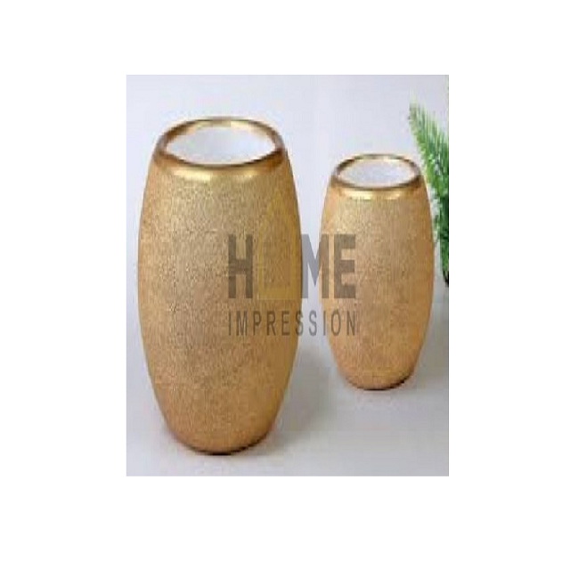 Gold Plated Shiny Metal Tin Design Oval Shape Home & Hotel Decorative Modern Flower Vase Home and Hotel Decorative for Hot Sale