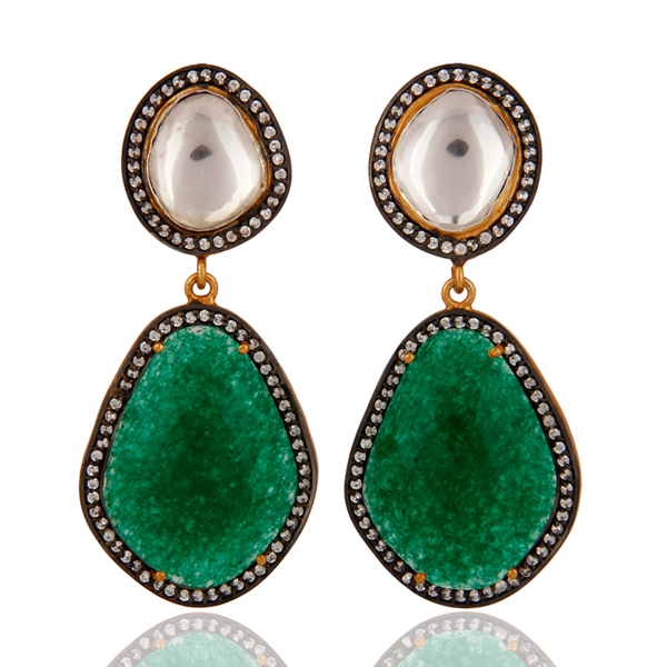 Gold Plated Silver Green Aventurine Gemstone Crystal Polki Earring Manufacturer of Designer Handmade Jewelry