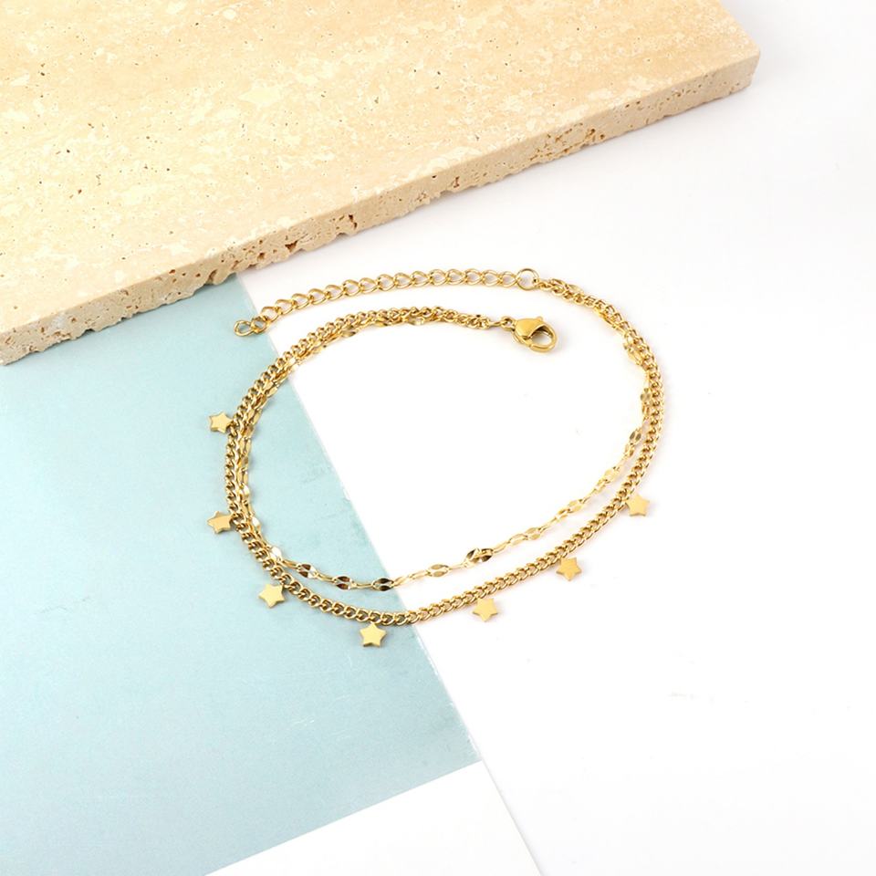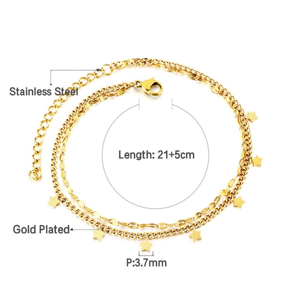 Gold Plated Stainless Steel Anklet Bracelet Zircon Layer ChainJewelry Designs 14k Anklet for Women