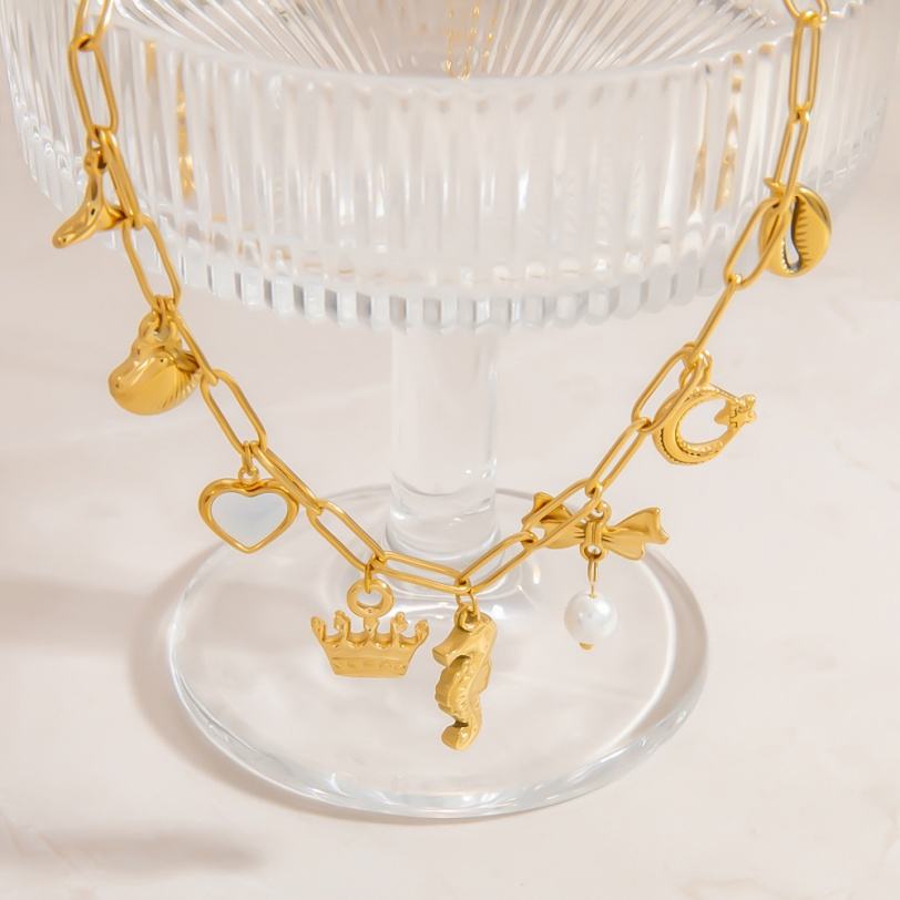 Gold Plated Stainless Steel Daisy Hearts Butterfly Starfish Leaf Charms Pendant Necklace Rose Cross for Jewelry Making Supplies