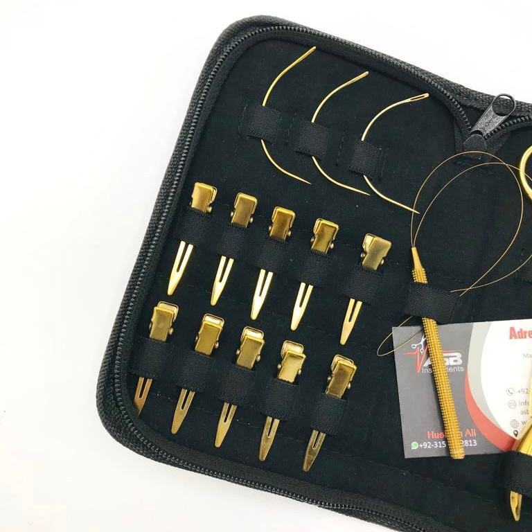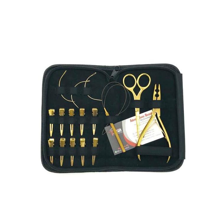 Gold Plated Stainless Steel Microbeads Hair Extension Tools Kit With Clips Scissor Hair Pulling Loop Hairs Extension