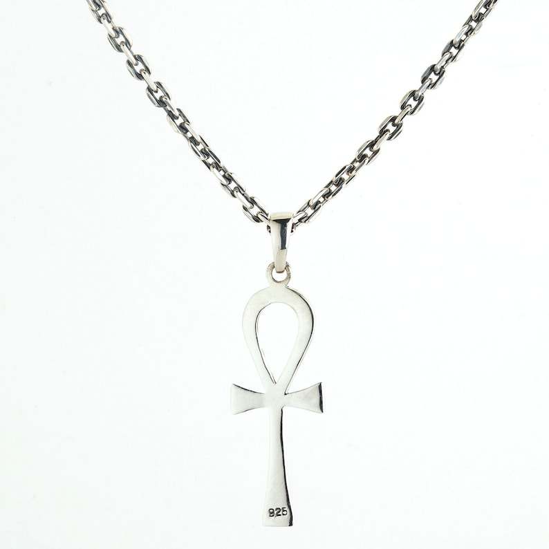 Gold Plated Sterling Silver Ankh Pendant Necklace with Bezel Setting Egyptian Symbol of Life