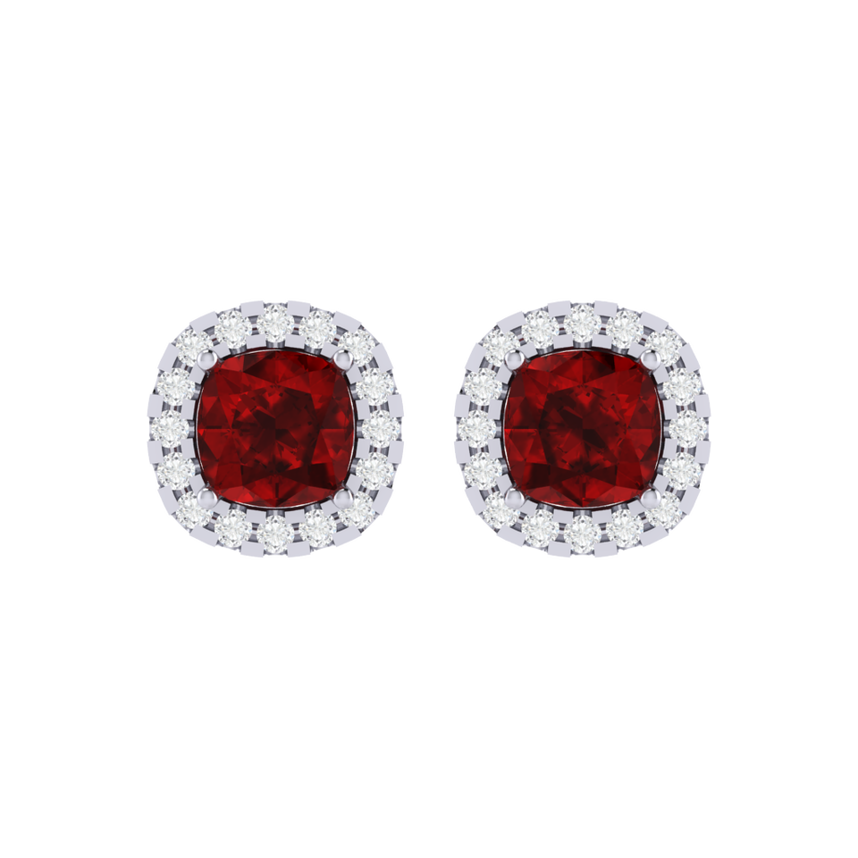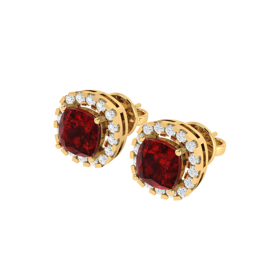 Gold-Plated Sterling Silver Fine Stud Earrings with Cushion Cut Ruby Gemstone 9.8mm 2.5gm