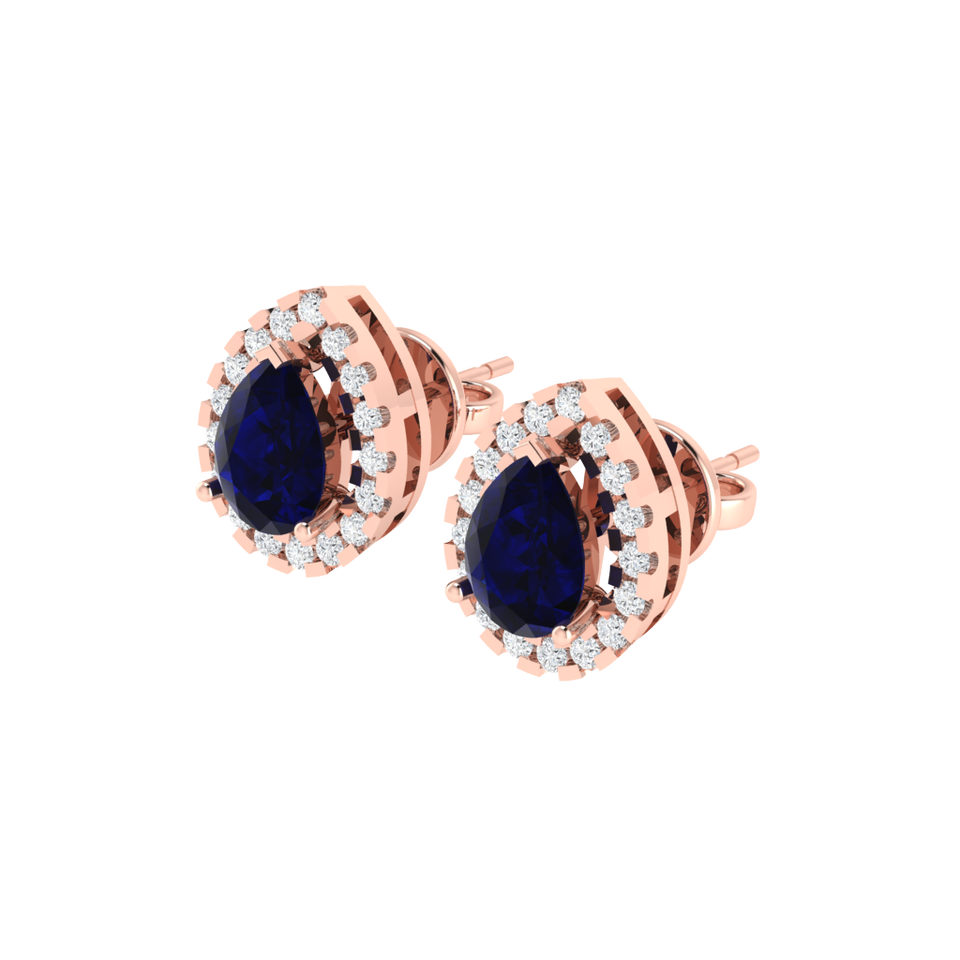 Gold-Plated Sterling Silver 2-Stone Pear-Cut Sapphire & Cubic Zirconia 11x8mm Fashionable Stud Earrings