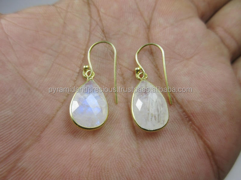 Gold Plated Sterling Silver Rainbow Moonstone Earring Pear Shape Drop Gemstone Fashion Jewelry