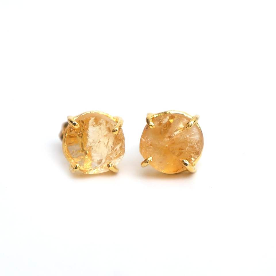 Gold Plated Sterling Silver Stud Earrings with 8-10mm Citrine Raw Gems Birthstone Rough Gemstone Jewellery