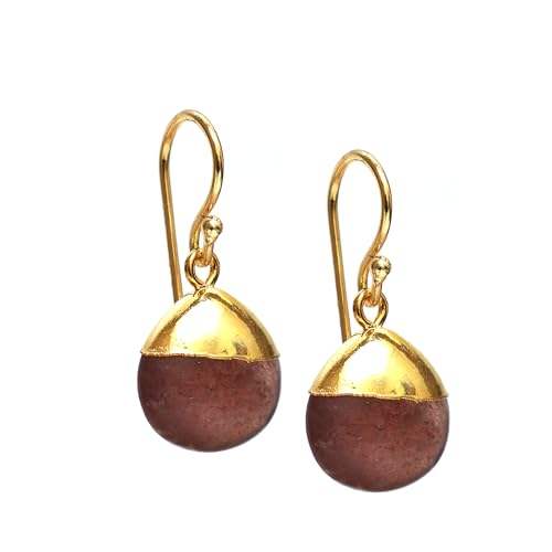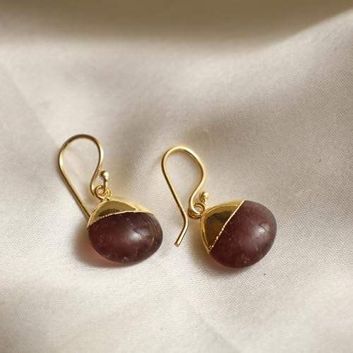 Gold Plated Strawberry Quartz Drop Earrings, 8-10mm Handmade Gemstone Dangle Earrings, Elegant Jewelry for Women