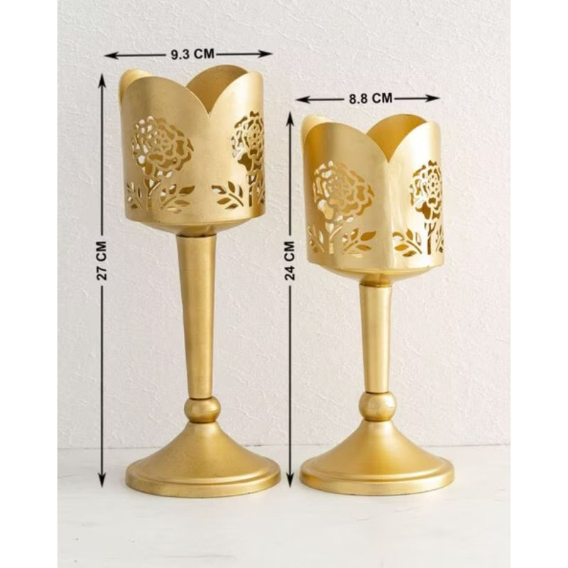 Gold Plated Tea Light Holder Large Size Exclusive Quality Metal Iron Candlestick Elegant Home Decor Decorative T-Light Holder