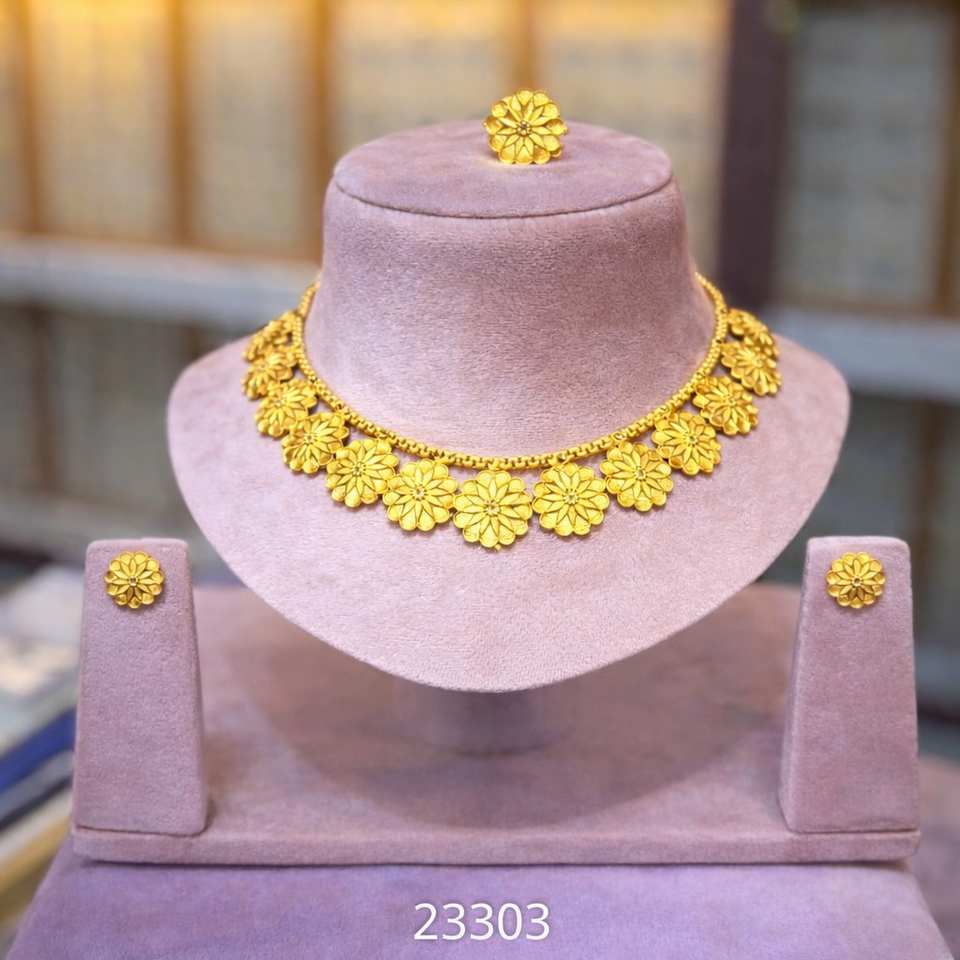 Gold Plated Traditional Floral Necklace Set with Matching Earrings Indian Bridal Jewelry Wholesale Model 23297