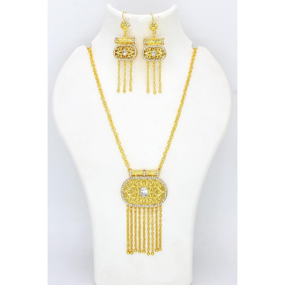 Gold Plated Trendy Brass Arabic Jewelry Sets With Earrings, Perfect Collection for Ramadan, Bridal Indian Dubai Jewelry