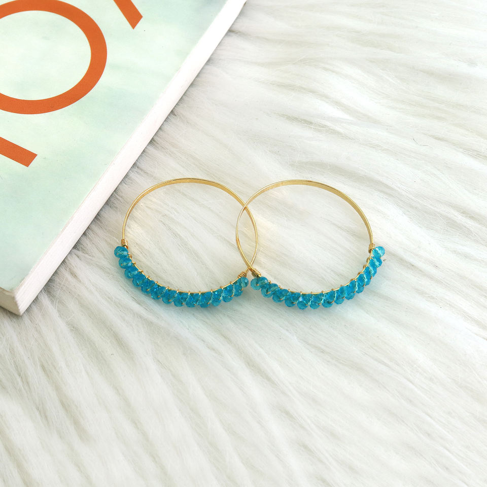 Gold Plated Wire Swiss Blue Topaz 40x37 MM Gemstone Beads Hoop DIY Earrings Wholesale