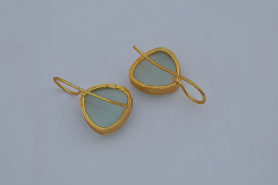 Gold Plated stud earrings wholesale handmade brass base monalisa stone hanging earrings