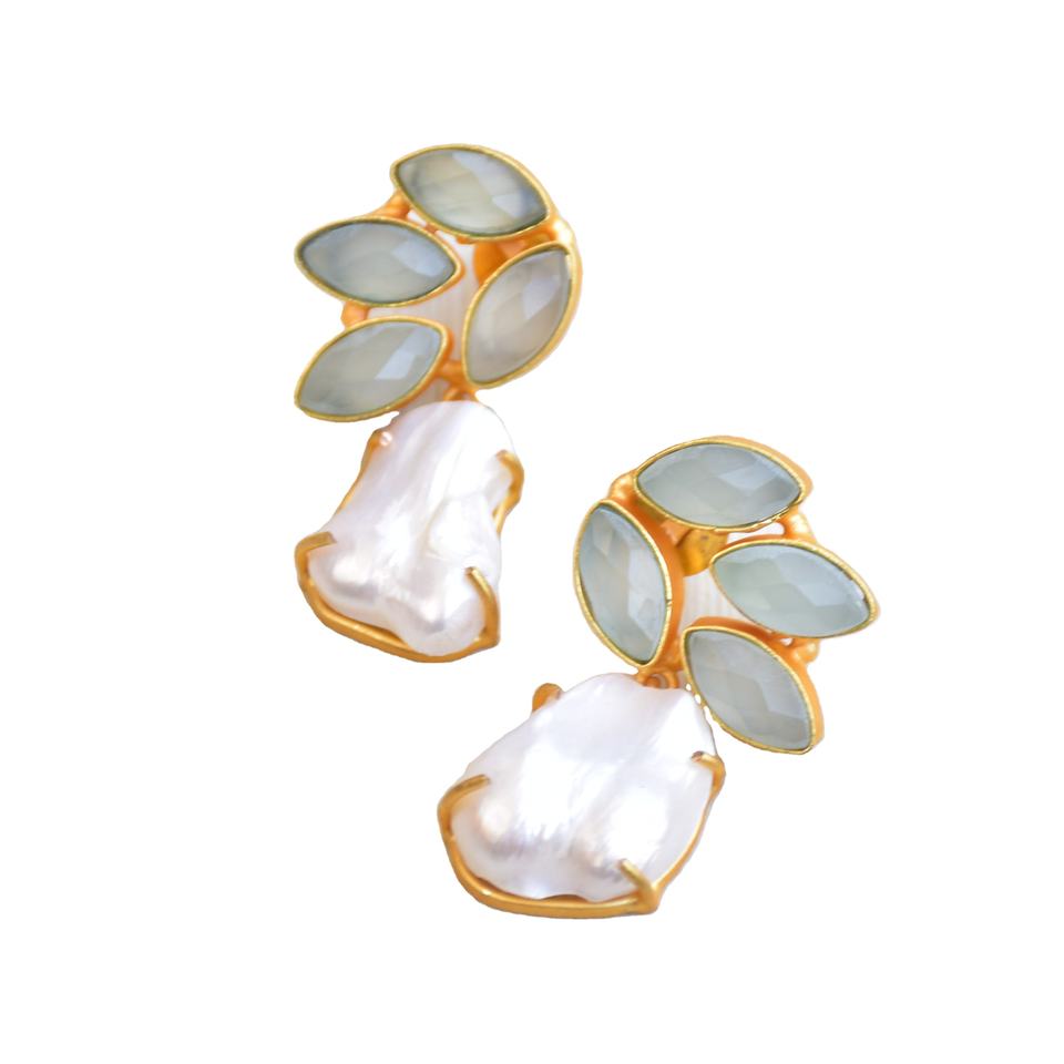 Product Name:Aqua Chalcedony with pearl drop earrings