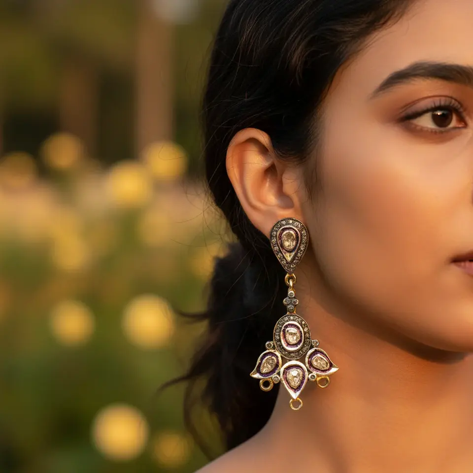 Gold Plating Teardrop Chandelier Earrings with Diamonds Fashion Jewelry for Women