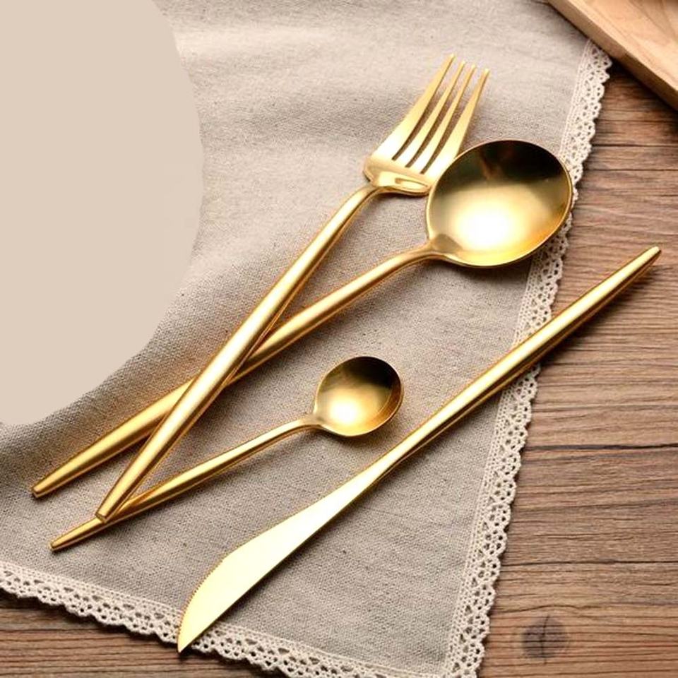 Gold Polish Metal Long Stick Design Metal Handle Spoon & Fork Soup Salad Serving Coffee Spoon Server Set