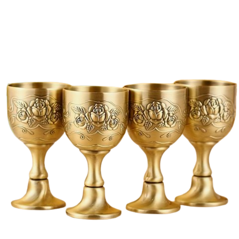 Gold Polished Metal Chalice Engraved Rose Design Wine Glass Cocktail Barware for Home Wedding or Special Occasions