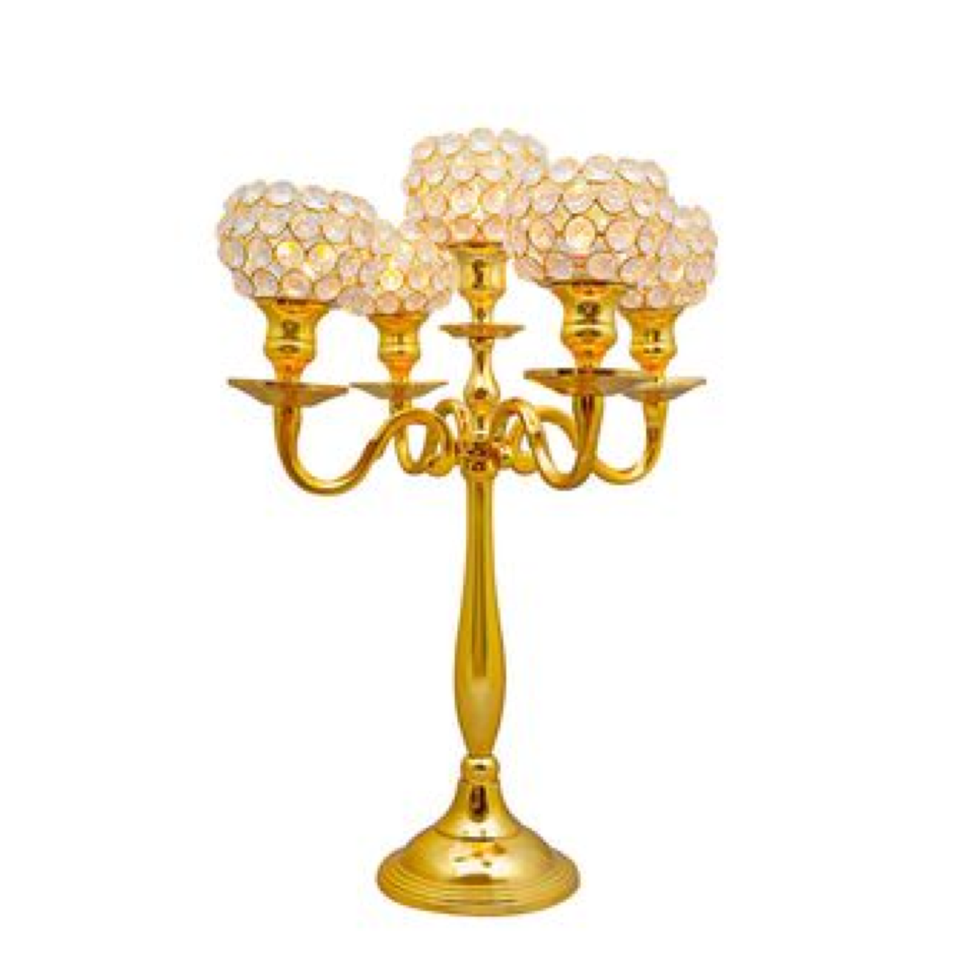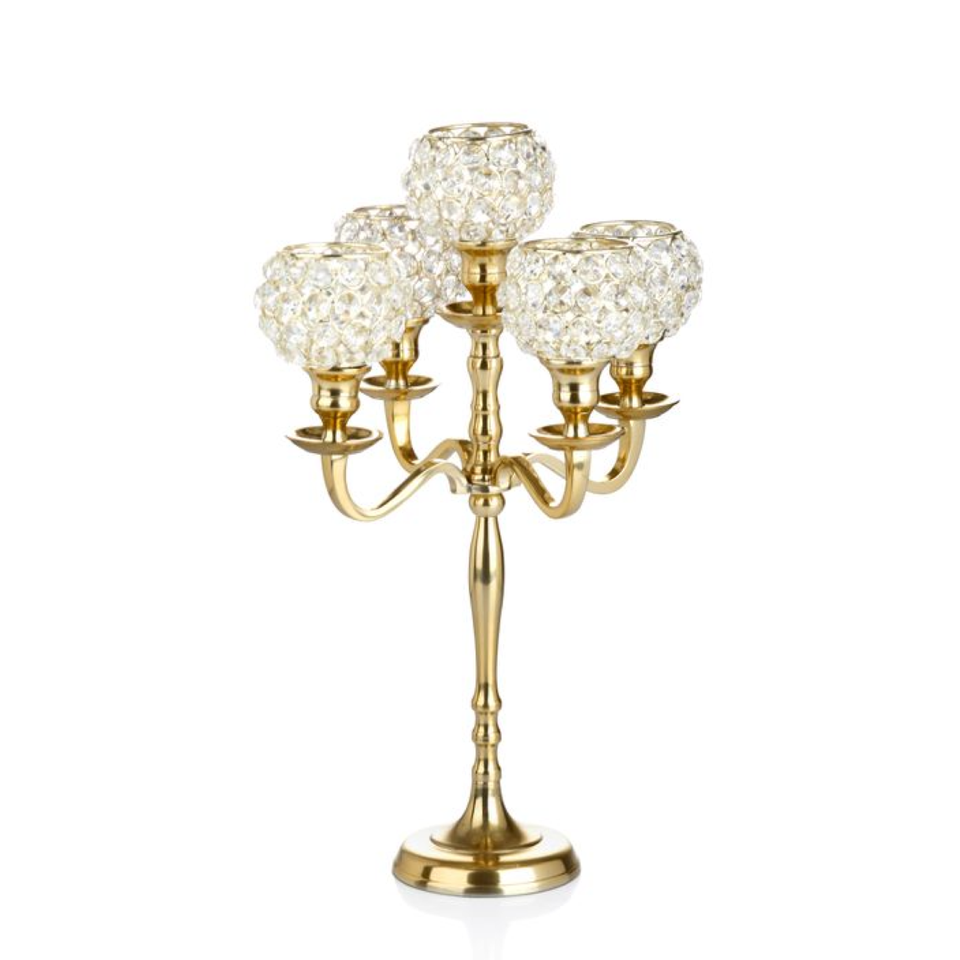 Gold Polished Metal 5 Arms Crystal Candelabra For Home Event Decoration Best Finishing Made of Pure Metal Regular Size