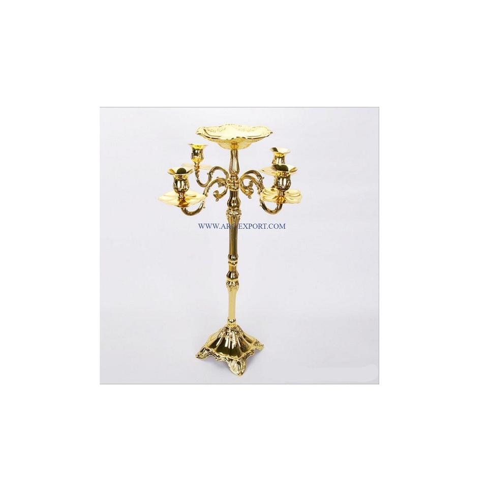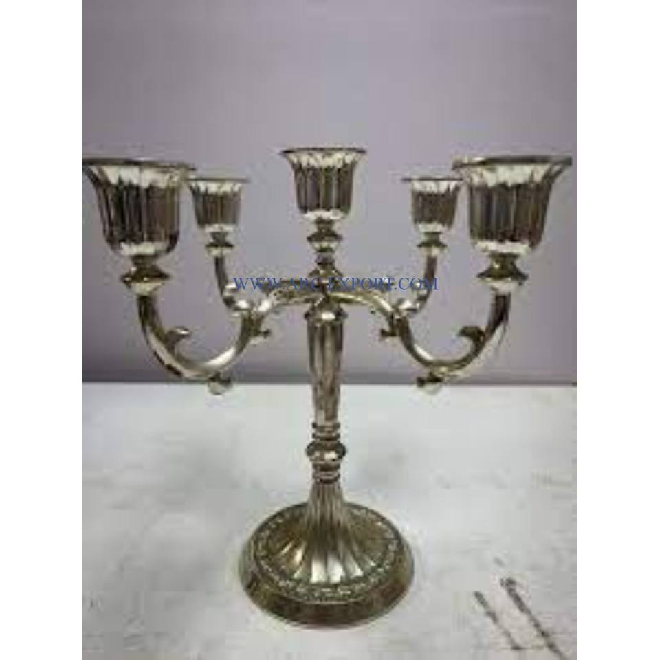 Gold Polished Metal Aluminum Table Decoration 5 Arms Lightening Candelabra Superior Quality Large Size Candelabra at Good Price