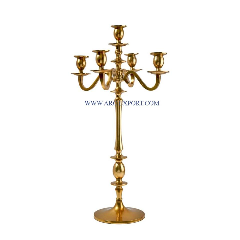 Gold Polished Metal Brass 5 Arms Table Ware Decoration Candelabra Superior Quality Large Size Home Lights Candlestick Holders