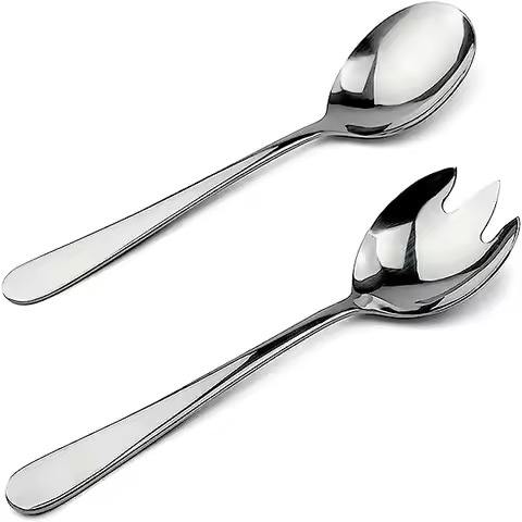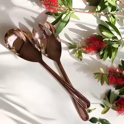 Gold Polished Metal Salad Server With Jute Wrapped Sleek Handles For Kitchenware Tableware