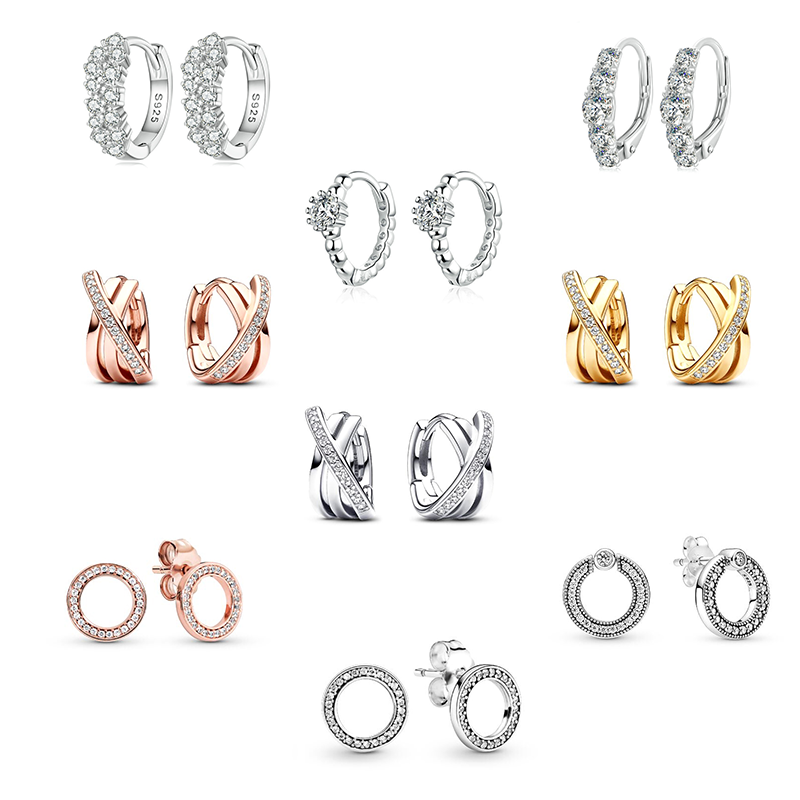 Gold Rhodium Plated 925 Sterling Silver Three Circle Hoop Earrings Zircon Trendy Wedding Gift Fashion Jewelry