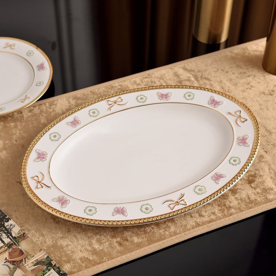 Gold Rimmed butterfly Porcelain Ceramic Dinnerware Set Dishwasher Safe for Hotel or Home Food Serving-Includes Plates and Dishes
