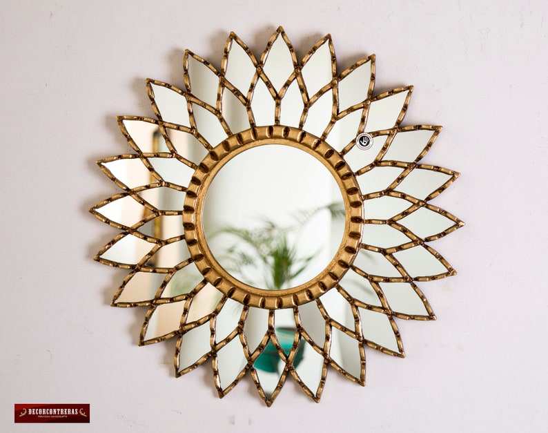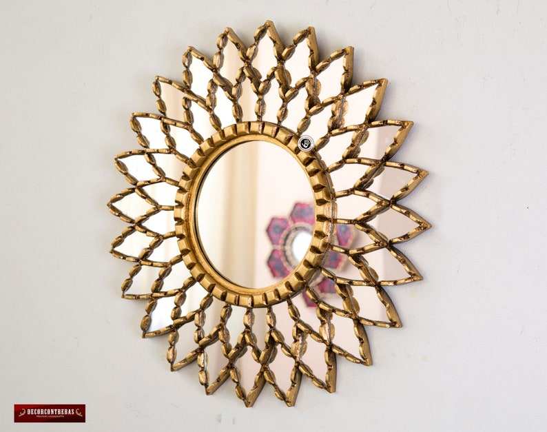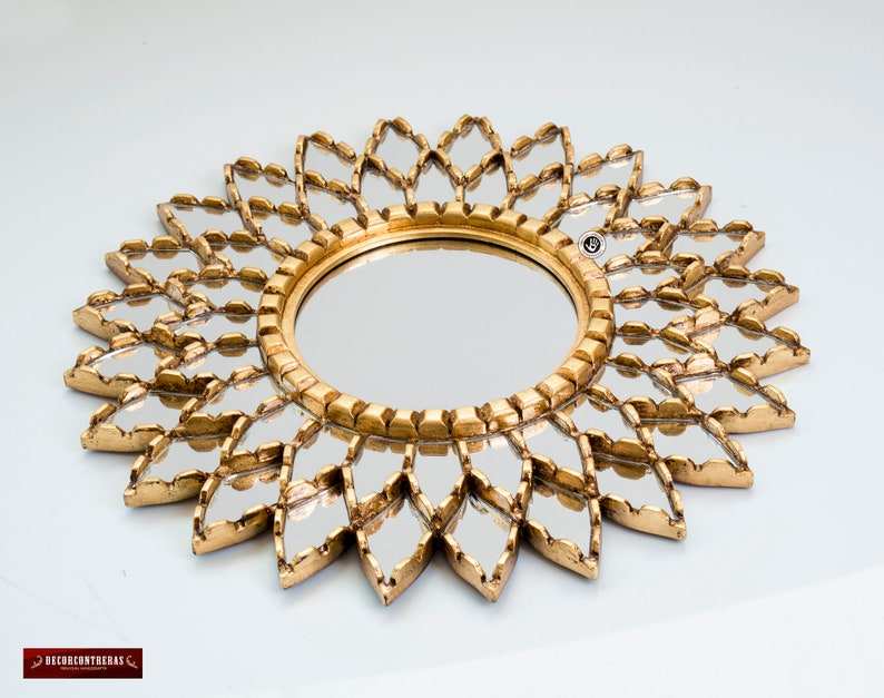 Gold Round Mandala Mirror 17.7" from Peru, Ornate Accent Wall Sunflower Mirror "Golden Mandala", Peruvian mirror