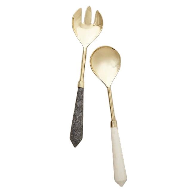 Gold Salad Serving Set Marble Handle Modern Spoon Fork Set Premium Two Tone Stone Handle Kitchen Cutlery for Dining Parties Wedd